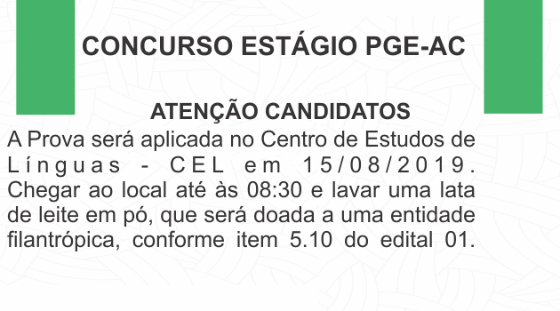 Chegar ao local até 08:30 e levar uma lata de leite em pó, que será doada a uma entidade filantrópica, conforme item 5.10 do Edital 01.